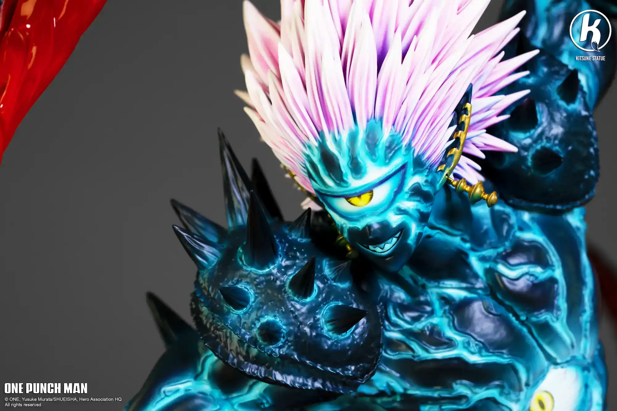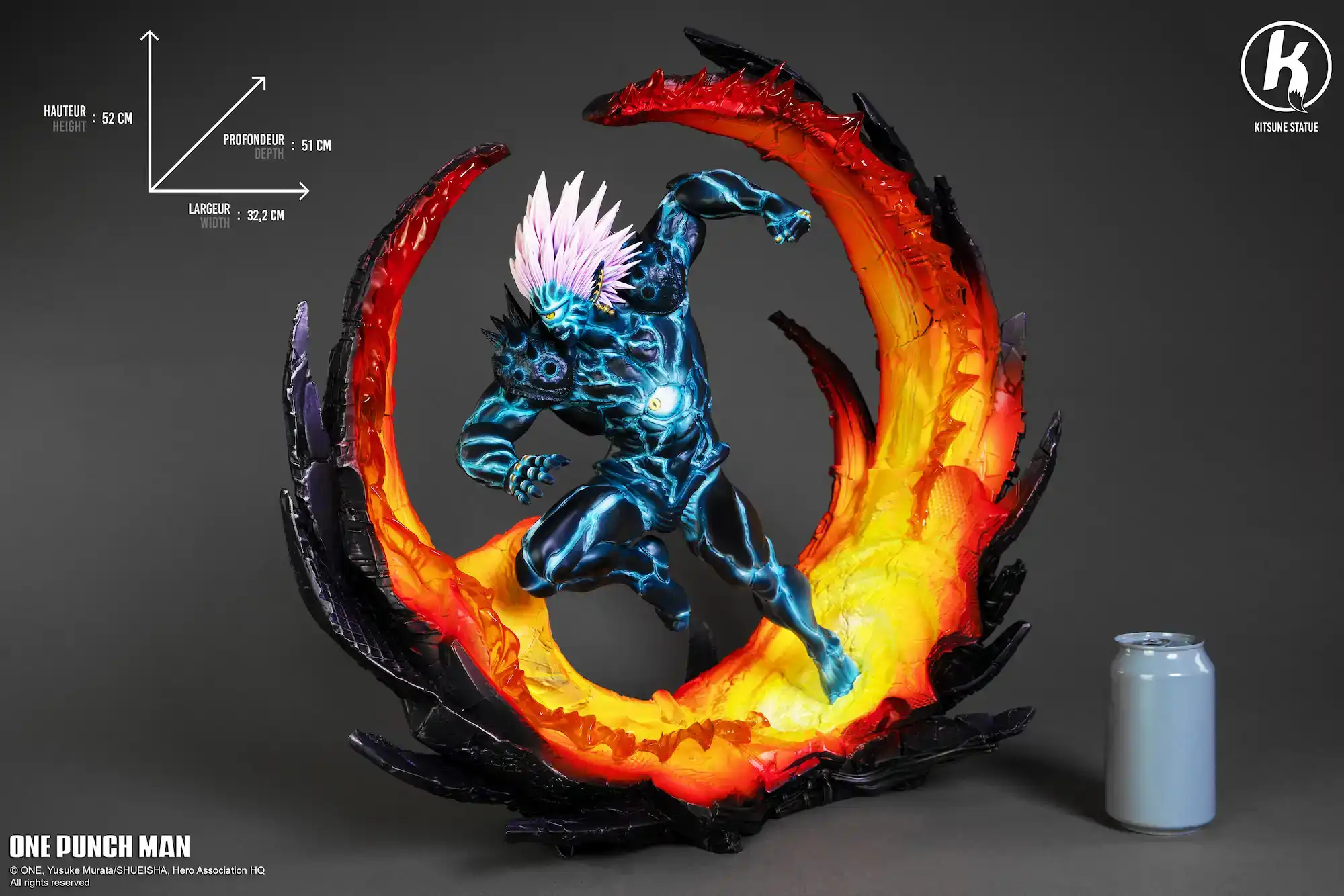Éditée à seulement 400 exemplaires, cette œuvre impressionne par ses dimensions : 52 cm de haut, 32,2 cm de large et 51 cm de profondeur. D’ailleurs, avec un poids d’environ 20 kilos, elle impose sa présence dans toute collection dédiée à l’univers de One Punch Man. Réalisée en résine, PU et PVC, elle combine solidité et finesse de finition.