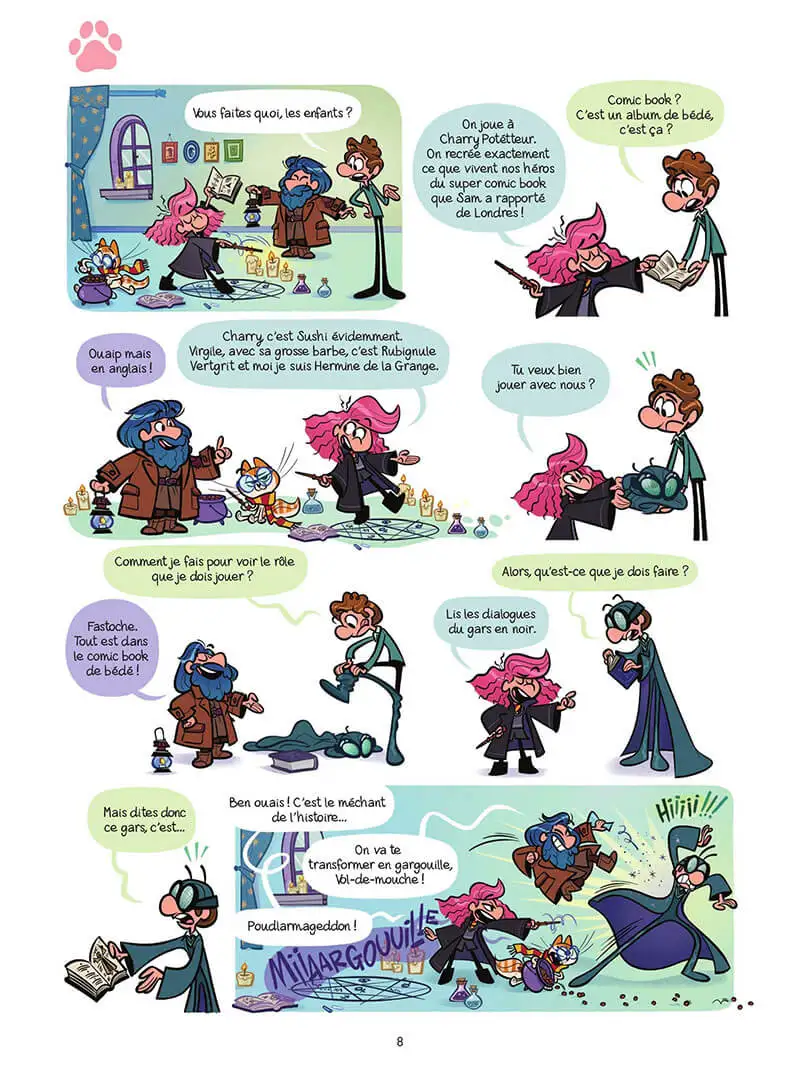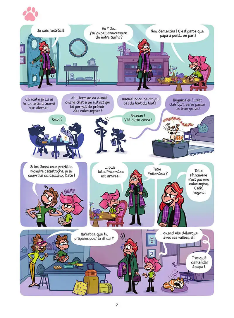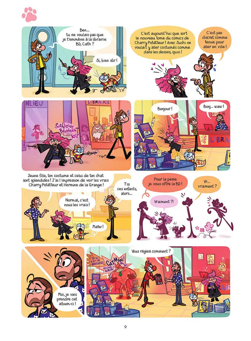 Avec Sushi, les chats partent en live ! Sushi est repéré pour devenir la vedette d’un film en live! Oui oui, un film, un vrai! Cath et son père l’accompagnent sur le plateau et autant dire que l’équipe technique va vite découvrir que ce chat est un peu spécial: il est ingérable! Mais qui sait, quand le film sortira – mais pourra-t-il seulement être terminé? Sushi sera peut-être une star. Non, c’est sûr, Sushi SERA la plus grande vedette de toute l’histoire du cinéma. Ça, Cath en est persuadée…